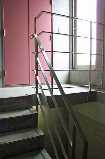 エントランスと階段、エレベーターは表通りに面する店舗エリア用と脇通りに面する住居専用に2ヵ所設けて動線を明確に分けています。